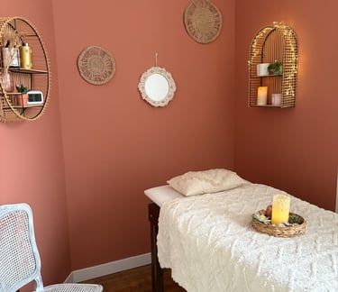 Je vous accueille dans mon cabinet, situé dans l'Eure, voici quelques photos de l'espace où se dérouleront vos séances et soins.