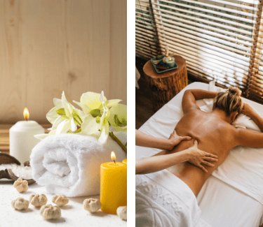 ~ LE MASSAGE A LA BOUGIE: Ce massage est un soin qui allie chaleur et détente profonde des muscles. Il stimule également les sens et favorise la détente mentale. La douce chaleur de la cire fondue et les parfums apaisants contribuent à une relaxation profonde.